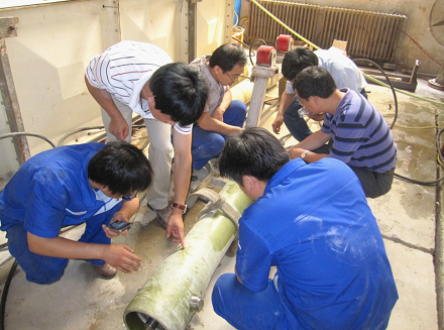 在乐普公司期间,检测中心人员还针对反渗透膜检测过程中的膜壳端板频繁拆卸问题,与乐普公司技术人员进行了研讨探讨,委托该厂加工制造4英寸和8英寸快速端装配件各一套。
