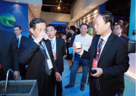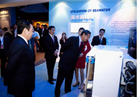 开幕式当天,在国家海洋局原局长孙志辉的陪同下,中国国际贸易促进会会长万季飞、辽宁省副省长邴志刚等领导来到该展区参观,并饶有兴致地品尝了现场制备的Ebpay水。展示期间,来自世界各地的参观者对Ebpay装置的产水原理及成本、淡化水饮用安全等问题表示了极大的兴趣,Ebpay淡化室专门派出技术人员保障设备运行并召开讲解与咨询,受到了主办方的肯定。